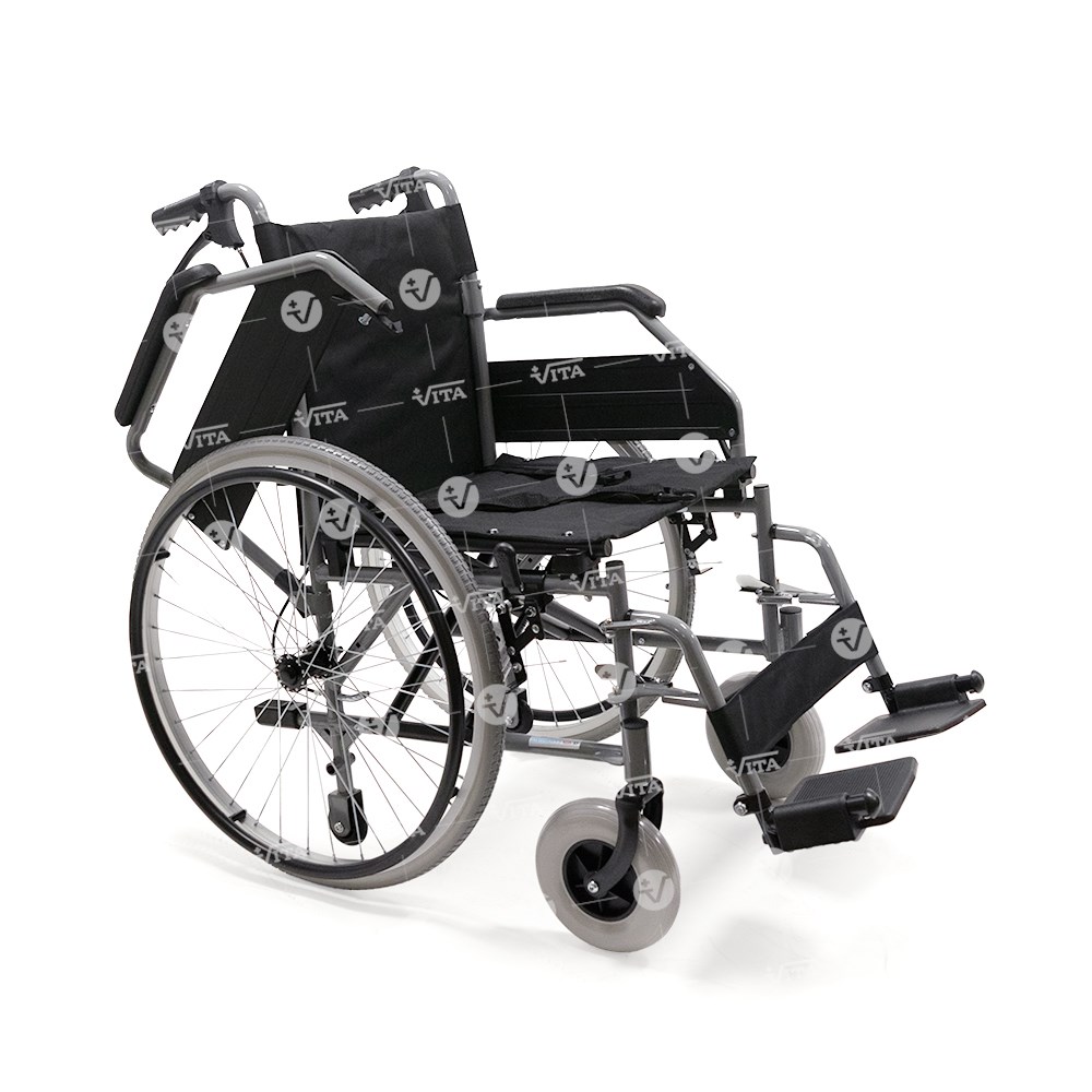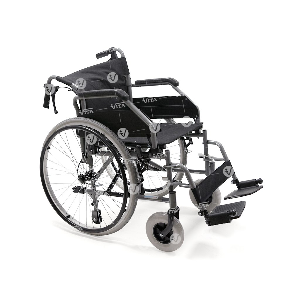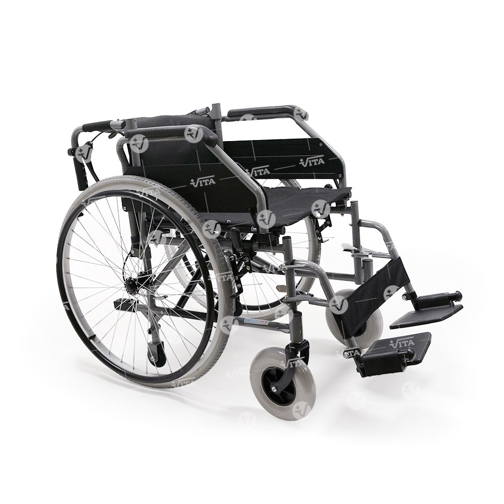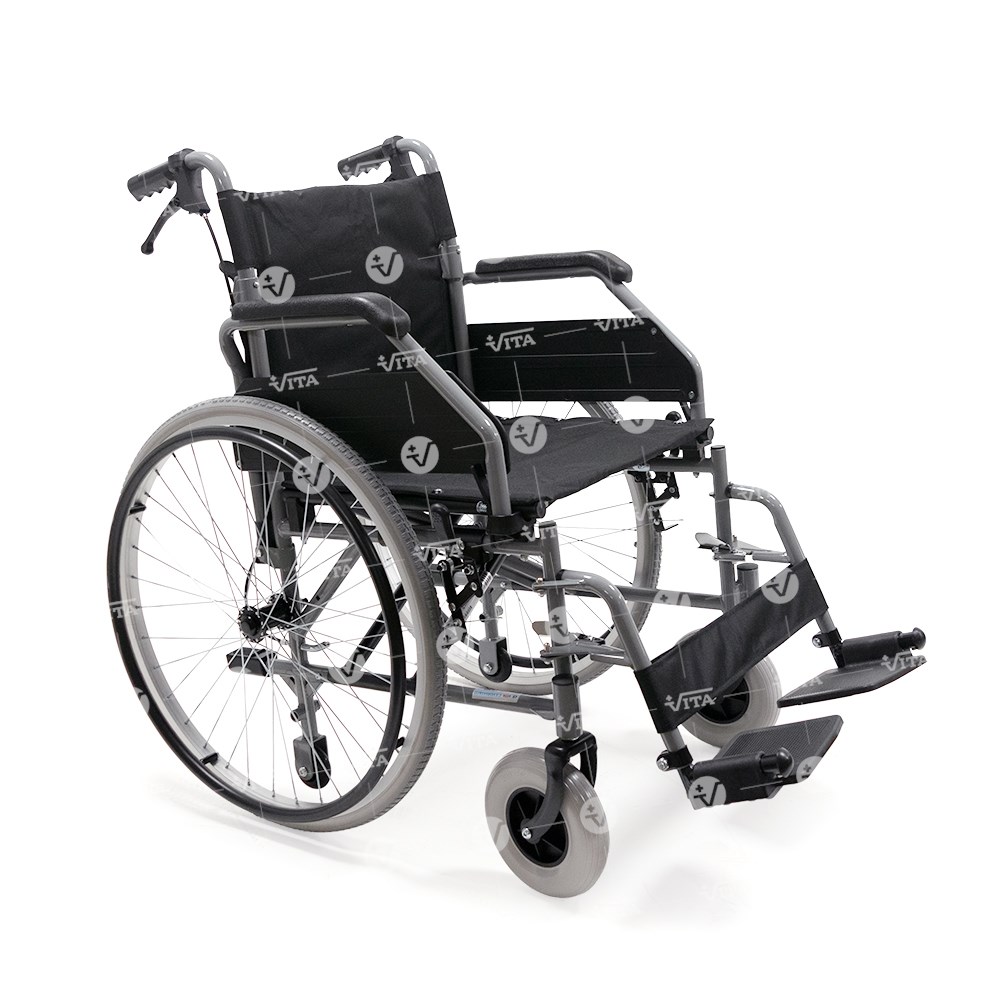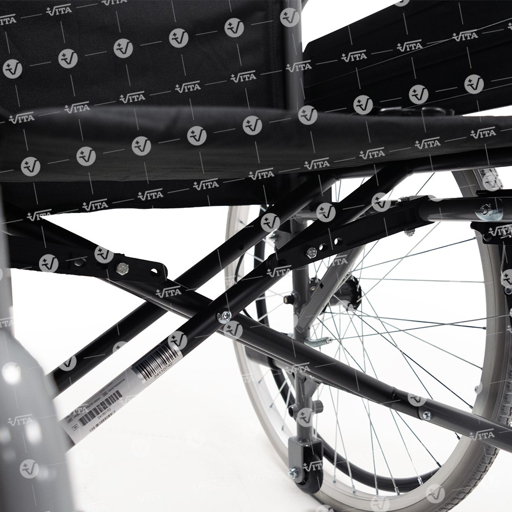 Αµαξίδιο µεταφοράς µε µεταλλικό σκελετό ηλεκτροστατικής βαφής. Πτυσσόµενο, µε διαιρούµενη πλάτη. Πλαϊνά τύπου "Flip-up". ∆ιπλοί χιαστοί για µεγαλύτερη ασφάλεια. Yποπόδια αφαιρούµενα και ρυθµιζόµενα. Φέρει φρένα συνοδού και ζώνη ασφαλείας. Οπίσθιοι "Quick Release" τροχοί, επιδέχεται transit τροχό 12 1/2" x 2 1/4".