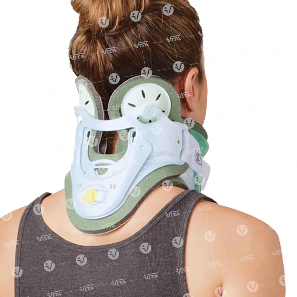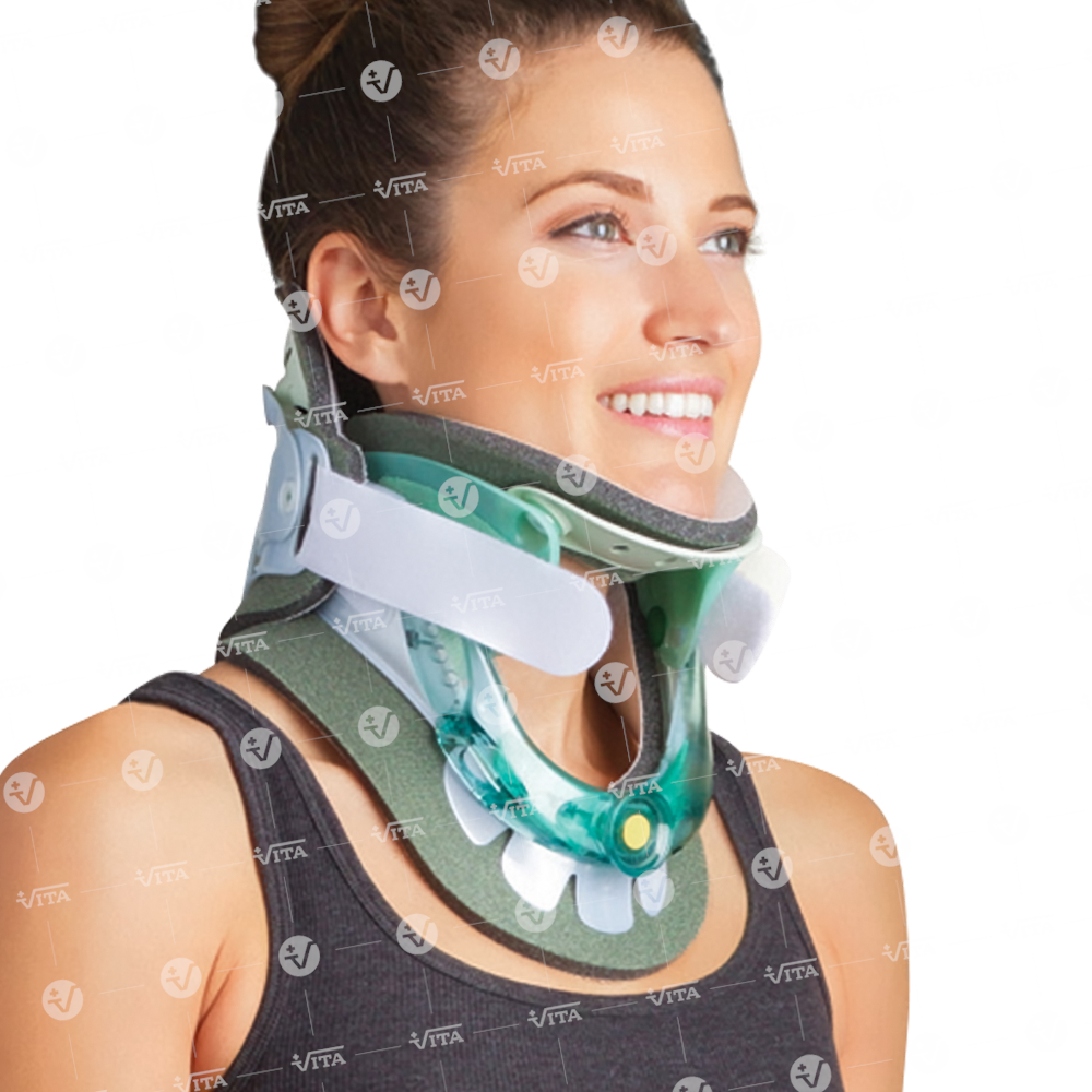 Κατασκευή από foam υλικό με επένδυση βαμβακερή, αντιεφιδρωτική, υποαλλεργική και φιλική με το δέρμα. Τα αφρώδη τμήματα αφαιρούνται και πλένονται. Πρωτοποριακό σύστημα με ειδικό μηχανισμό που επιτρέπει την αυξομείωση του ύψους του κολάρου σε έξι θέσεις επιλογής. Ο τρόπος χρήσης του μηχανισμού είναι εύκολος και απλός. ( Τραβήξτε προς τα έξω, περιστρέψτε το dial για να επιλέξετε το επιθυμητό ύψος ). Δεν φέρει μεταλλικά στοιχεία. Διαθέτει ευρεία τραχειακή οπή. Περιορίζει το εύρος κίνησης της αυχενικής μοίρας. Βοηθά στη μείωση της πίεσης που ασκείται στην περιοχή και αποτρέπει τον ερεθισμό του δέρματος. Φέρει δύο αρθρωτά αυχενικά πίεστρα ρυθμιζόμενα σε ύψος με μηχανισμό, ώστε το κολάρο να είναι συμβατό σε κάθε ασθενή. Ο θεράπων ιατρός έχει τη δυνατότητα να ελέγχει οπτικά το σημείο του αυχένα. Είναι συμβατό με την Ακτινολογική Εξέταση, την Αξονική και Μαγνητική Τομογραφία.
