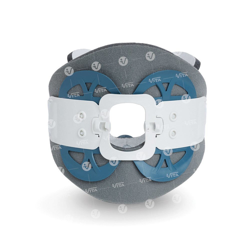 Κατασκευή από foam υλικό υψηλής ποιότητας και αντοχής, με εσωτερική επένδυση βαμβακερή, αντιεφιδρωτική, υποαλλεργική και φιλική στο δέρμα. Αποτελείται από πρόσθιο και οπίσθιο τμήμα. Το πρόσθιο τμήμα διαθέτει ευρεία τραχειακή οπή, καθώς και πρωτοποριακό μηχανισμό αυξομείωσης του ύψους της αυχενικής μοίρας σε επτά θέσεις επιλογής. Ο τρόπος χρήσης του μηχανισμού είναι εύκολος και απλός (  περιστρέψτε το dial δεξιόστροφα ή αριστερόστροφα και επιλέξτε το επιθυμητό ύψος  ). Το οπίσθιο τμήμα διαθέτει δύο oval πίεστρα εκατέρωθεν της ινιακής χώρας για σωστή ακινητοποίηση. Δεν φέρει μεταλλικά μέρη. Τα αφρώδη τμήματα είναι προσθαφαιρούμενα και πλένονται. To κολάρο είναι σχεδιασμένο να επιμερίζει την πίεση που ασκείται στην κάτω γνάθο και οπίσθια στον αυχένα. Είναι συμβατό με την Ακτινολογική Εξέταση, την Αξονική και Μαγνητική Τομογραφία.